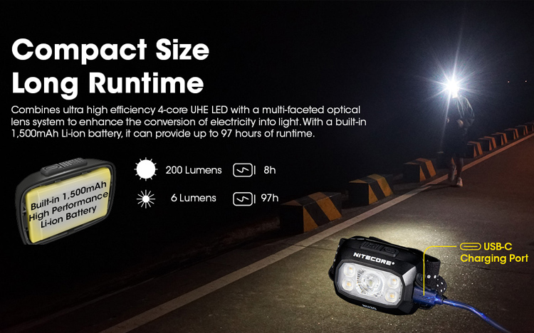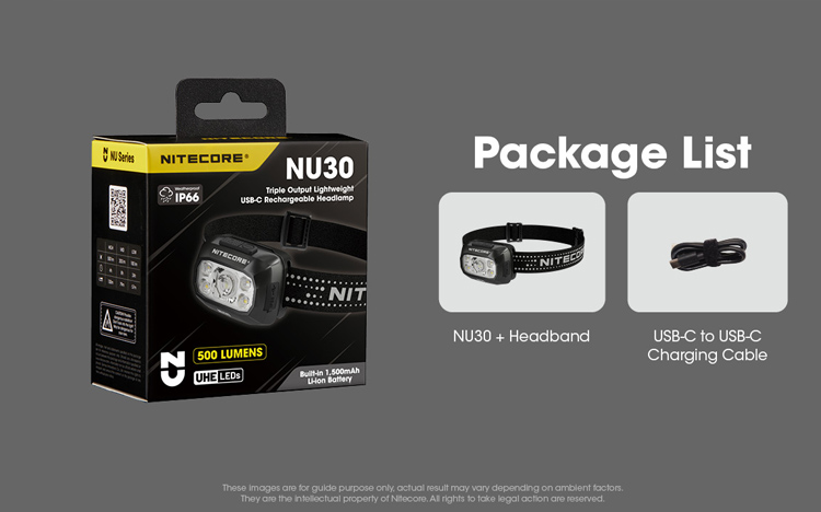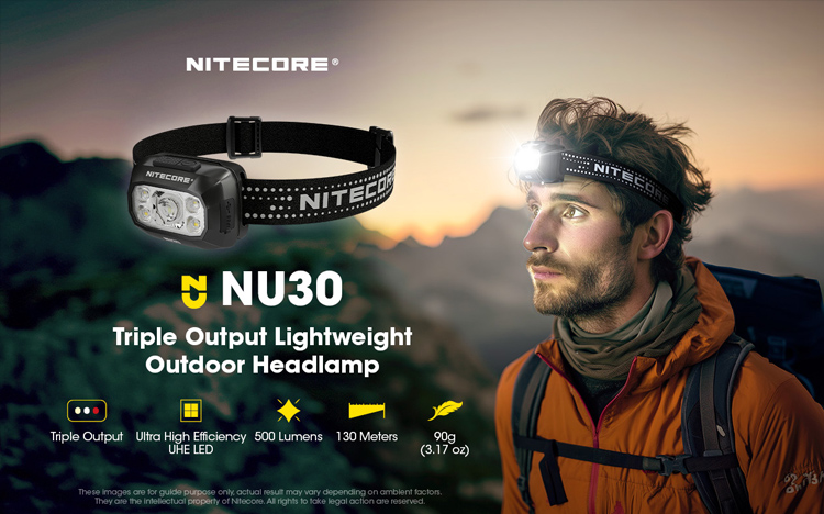 Новая модель налобного фонаря NU30 с возможность его зарядки с помощью USB. Встроенный литиево-ионный аккумулятор имеет ёмкость в 1500mAh, такая емкость обеспечит время работы фонаря до 97 часов. Зарядка происходит с помощью USB-порта, который находится в боковой части корпуса.